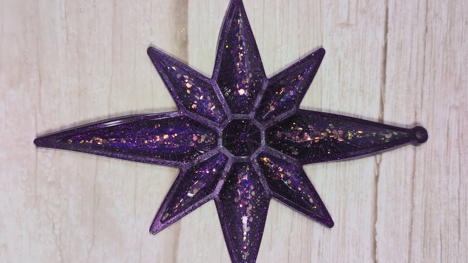 A bold, shimmering star designed to catch the light from every angle. This handmade resin ornament features a dramatic purple–copper chameleon shift with crisp geometric detail. Lightweight, durable, and ready to hang — perfect for Christmas trees, decorative garlands, or adding a little celestial drama to your home.