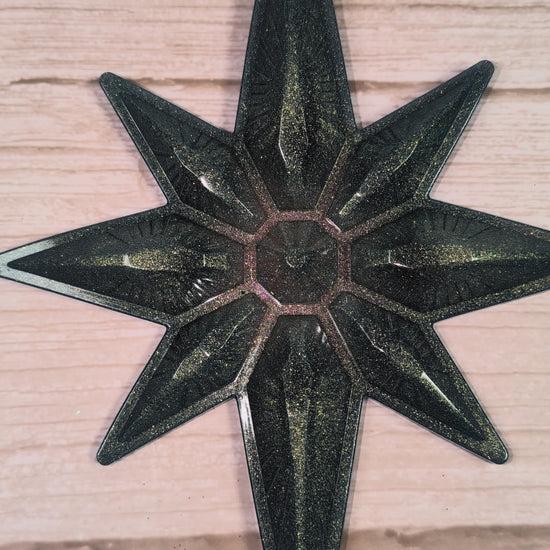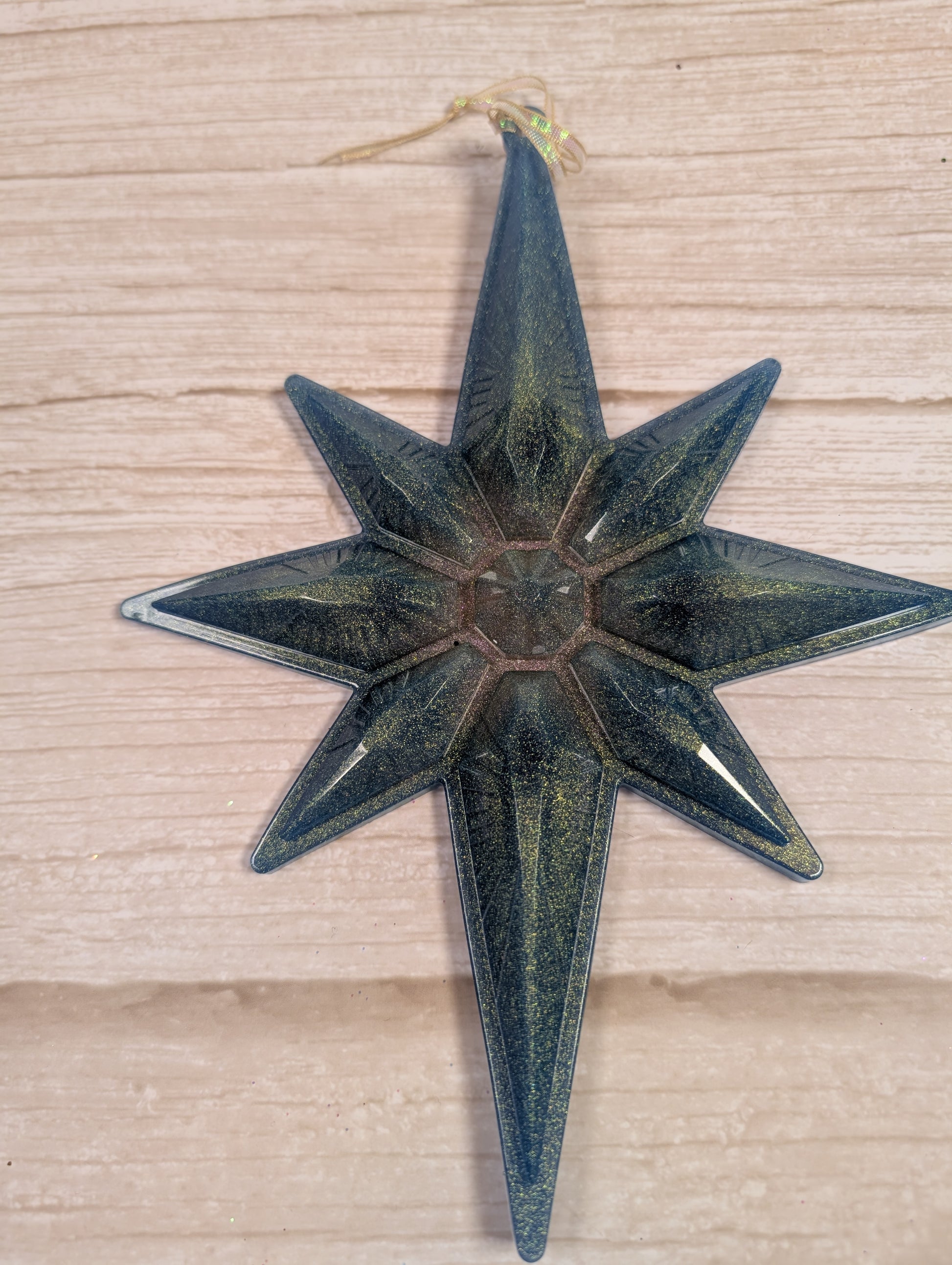 A bold, shimmering star designed to catch the light from every angle. This handmade resin ornament features a dramatic purple–copper chameleon shift with crisp geometric detail. Lightweight, durable, and ready to hang — perfect for Christmas trees, decorative garlands, or adding a little celestial drama to your home.