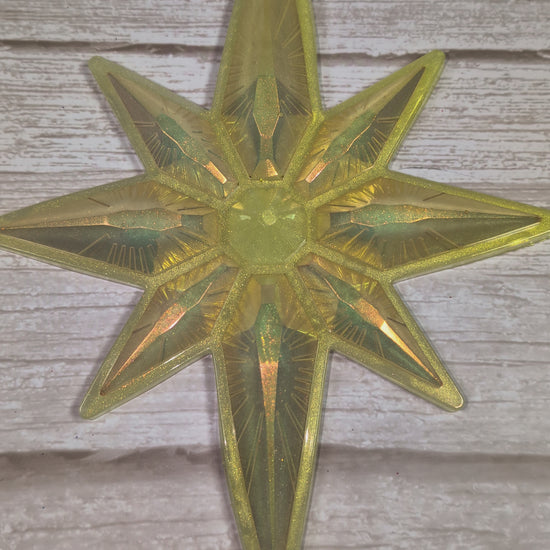 A bold, shimmering star designed to catch the light from every angle. This handmade resin ornament features a dramatic purple–copper chameleon shift with crisp geometric detail. Lightweight, durable, and ready to hang — perfect for Christmas trees, decorative garlands, or adding a little celestial drama to your home.