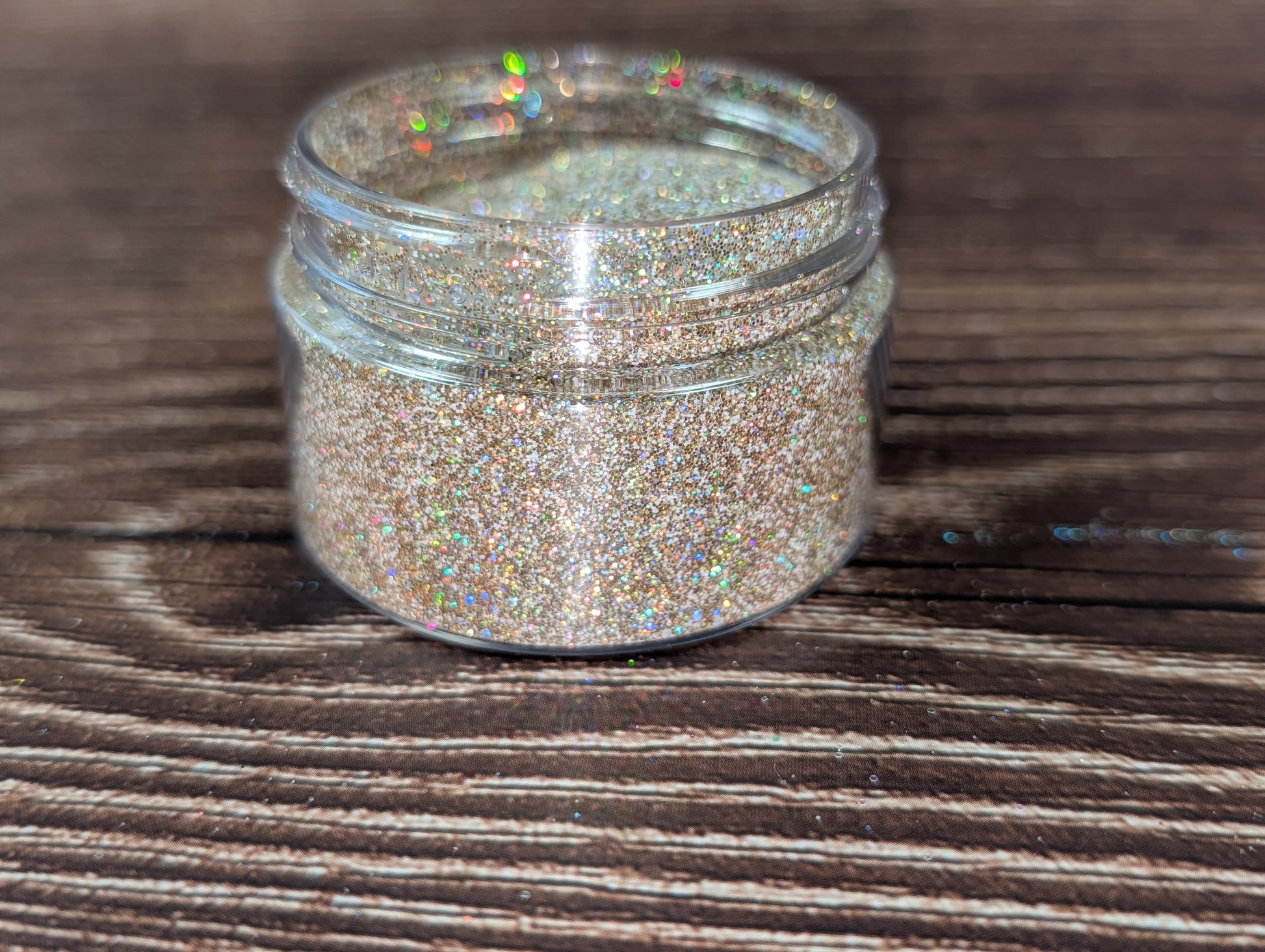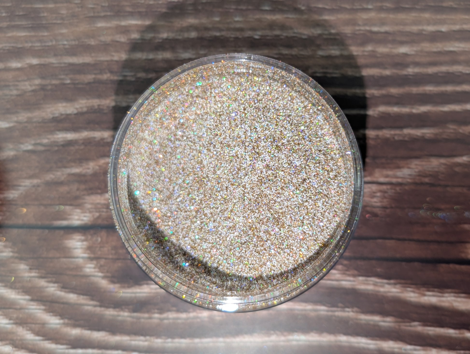 This holographic ultrafine glitter throws a bright, clean rainbow without being loud for the sake of it. It mixes smoothly into resin, stays where you put it, and cures with a crisp shimmer which complements the colour of the glitter.