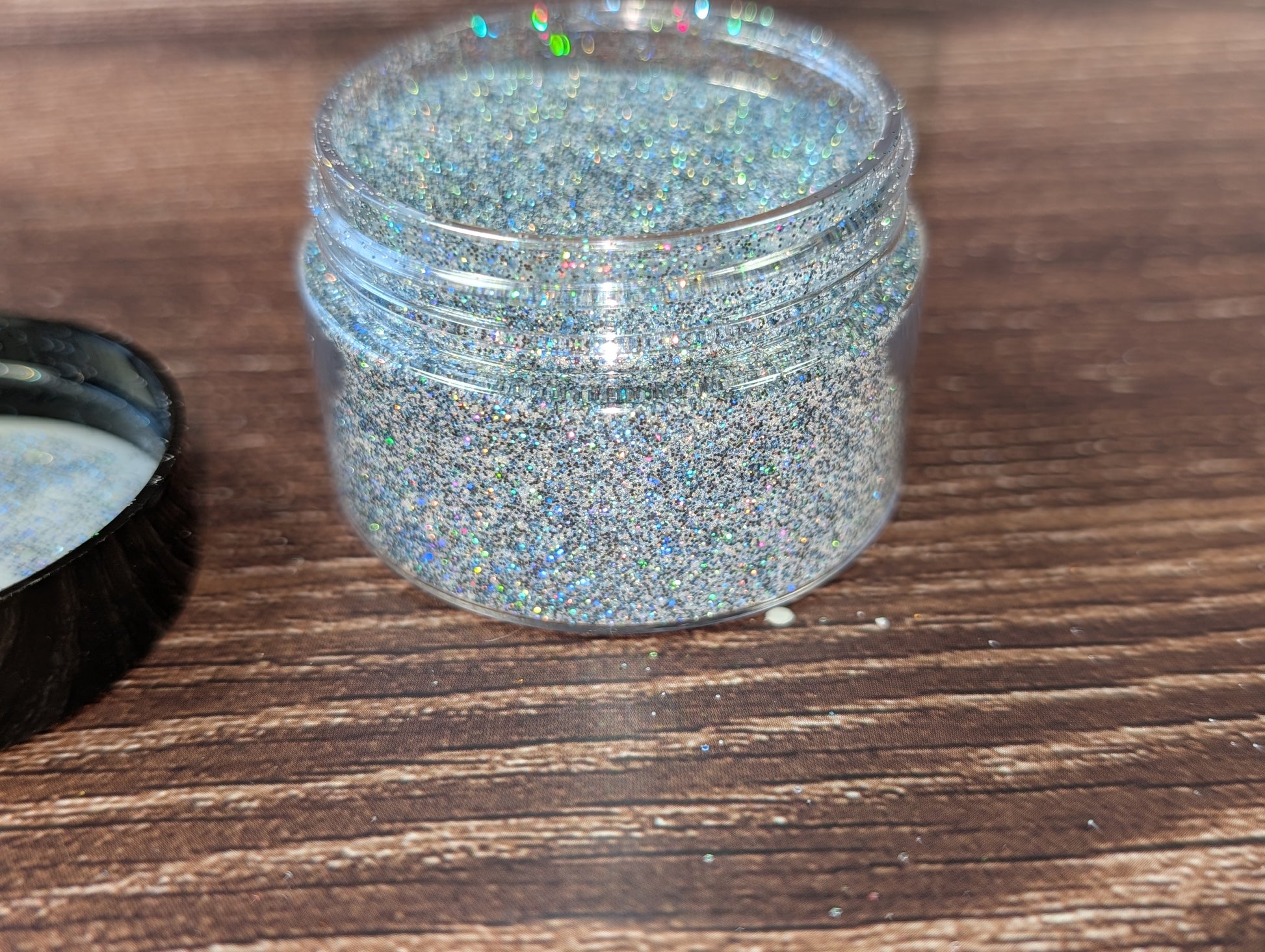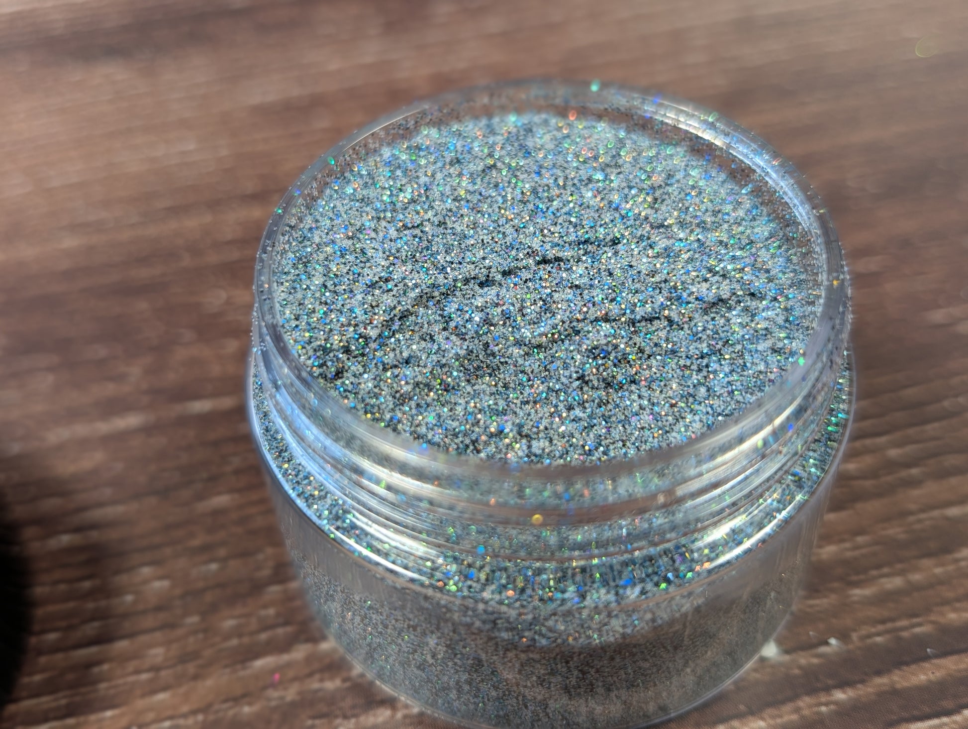 This holographic ultrafine glitter throws a bright, clean rainbow without being loud for the sake of it. It mixes smoothly into resin, stays where you put it, and cures with a crisp shimmer which complements the colour of the glitter.